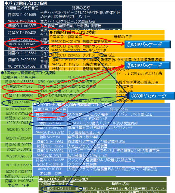 実施を希望される方は、それぞれのプロセス技術群の中から実施を希望される特許等(IP)を選択して、IPパッケージとして実施申し込みをしてください。IPパッケージに含まれるIPの数が多いほど、IPパッケージの実施料が優遇されます。