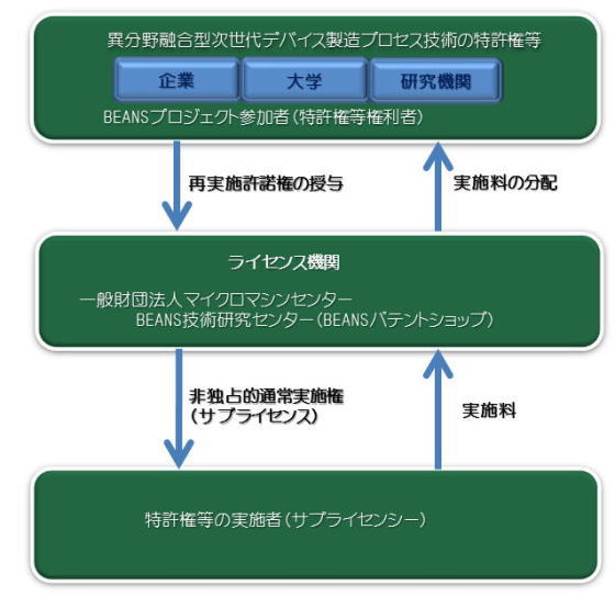 - 実施ご希望のBEANS特許等の他に、BEANS特許等権利者が保有するBEANS特許等と利用関係にある特許(バックグランドIP)についても、特許等権利者との協議により、実施許諾します。