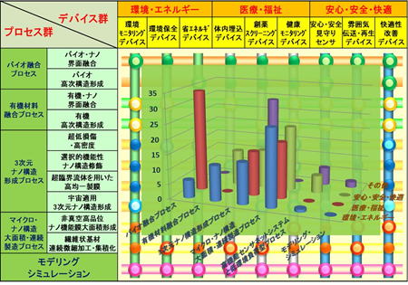 本プロジェクトにおいては、次なるイノベーションのためのプラットフォームを確立することを目指し、革新的次世代デバイス BEANS の創出に必要な基盤的プロセス技術群の開発がなされました。そして、その研究成果の多くの技術群につき特許取得が行われています。