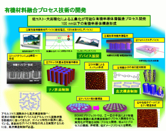次元へテロ組織化、有機材料のナノピラー構造やナノポーラス構造を形成するプロセスなどが含まれます。