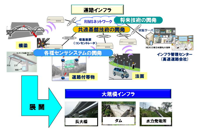 さらに、道路インフラモニタリングシステム研究開発の成果を長大橋や発電所等の大規模インフラモニタリングへ展開し、その省エネに貢献することを目指します。